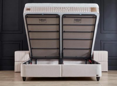 Das Bett ist dank seiner Voll-orthopädischen Matratze ideal für komfortable Nächte. Dazu bietet das Bett zusätzlichen Stauraum für Bettwäsche, Decken und andere Dinge dank des dazugehörigen Bettkastens. Die Beschaffenheit der hochwertigen Matratze vermittelt ein angenehmes Schlafgefühl mit höchster Atmungsaktivität. Dieses Hybrid-Matratzenmodell vereint die perfekte Harmonie einer neuen Federkern Technologie, des Coil Pro Balance-Federsystems und des atmungsaktiven Schaums, um Ihrem Körper eine optimale orthopädische Unterstützung zu bieten. Die Anti-Rutsch-Gewebebeschichtung sorgt für Stabilität und hilft dabei, die Körpertemperatur während des Schlafens stabil zu halten. Die Konstruktion besteht aus hochkarbonisiertem Stahl und ist gegen Korrosion und Kratzer durch elektrostatische Lackierung geschützt. Das Bett arbeitet in Harmonie mit der Matratze und bietet eine ergonomische Unterstützung. Besondere Öffnungsgriffe und ein modernes und stilvolles Stoffdesign runden das Design ab. Das luxuriöse und stilvolle Design wird Ihrem Schlafzimmer eine elegante Note verleihen.