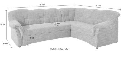 Das Ecksofa aus der DOMO collection kombiniert ansprechendes Design mit hohem Sitzkomfort. Seine Optik ist durch abgerundete Armlehnen und eine gesteppte Rückenlehne bestimmt. Durch die Ausstattung mit einer Wellenunterfederung und einer Polsterung aus Polyätherschaum ermöglicht das Sofa ein angenehmes Sitzen. Gefertigt wird es aus FSC®-zertifiziertem Holzwerkstoff.