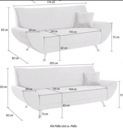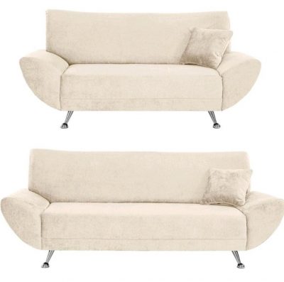 Bequem und einladend: Die 2-teilige Polstergarnitur von INOSIGN bietet hohen Sitzkomfort. Dafür sorgen neben dem stabilen Gestell aus FSC®-zertifiziertem Holzwerkstoff auch die angenehme Wellenunterfederung und die atmungsaktive Polyätherschaum-Polsterung. Die Garnitur setzt sich aus einem 2-Sitzer und einem 3-Sitzer zusammen. Das moderne Design punktet mit elegant geschwungener Linienführung. Hübsch abgerundete und spitz zulaufende Arm- und Rückenlehnen sowie schräge, rund abschließende Metallfüße kennzeichnen die besondere Formensprache. Die hochwertigen Polstermöbel sind auch auf der Rückseite mit dem Originalstoff bezogen und lassen sich daher je nach Geschmack und räumlichen Gegebenheiten frei im Wohnbereich positionieren.